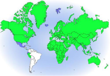 游荡:安圭拉、安提瓜和巴布达、百慕大、不丹、加拿大、哥斯达黎加、多米尼加、厄瓜多尔、法属南部领土、直布罗陀、格林纳达、瓜德罗普岛、冰岛、老挝人民民主共和国、莱索托、卢森堡、马绍尔群岛、马提尼克岛、墨西哥、蒙特塞拉特、秘鲁、波多黎各、圣基茨和尼维斯、圣卢西亚、圣皮埃尔和密克隆、圣文森特和格林纳丁斯、圣多美和普林西比、斯瓦尔巴和扬马延、特立尼达和多巴哥、英属维尔京群岛。