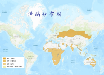 泽鹬在中国分布于内蒙古东北部、黑龙江和吉林省,迁徙时经过辽宁、河北、山东、江苏、西至甘肃、新疆、往南经福建、广东、海南岛和台湾,部分在台湾越冬。