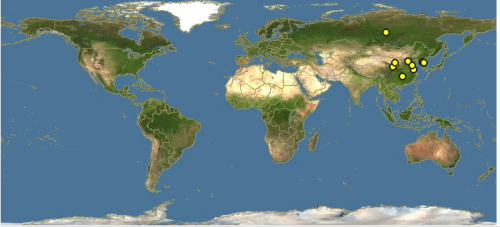 分布于中国、俄罗斯、朝鲜和韩国。中国分布于黑龙江、辽宁、吉林、内蒙古、河北、山东、河南、山西、安徽、江苏、陕西和甘肃。
