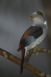 科:阔嘴鸟科 属:丝冠鸟属 命名时间:Gould, 1834 英文名称:Sliver-breasted Broadbill