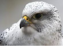 矛隼(学名:Falco rusticolus):是隼科的一种,体长60厘米,翼展105-135厘米,体重1000-2150克。嘴、脚强健并具利钩,适应于抓捕及撕食猎物。喙基具蜡膜;翅强而有力,善疾飞及翱翔。索腭型头骨。脚和趾强健有力,通常3趾向前,1趾向后,呈不等趾型。头骨宽阔,上眼眶骨扩大,眼球较大,视野宽阔,视觉敏锐;听觉发达。