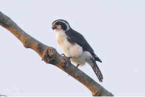 红腿小隼(学名:Microhierax caerulescens):属于隼形目隼科,几乎与麻雀一样大,是世界上最小的猛禽之一。有2个亚种,典型特征为前额为白色,眼睛上有一条宽阔的白色眉纹,往后经耳覆羽与上背的白色领圈相连,颊部和耳覆羽为白色,从眼睛前面开始有一条粗著的黑色贯眼纹经过眼睛斜向下到耳部。