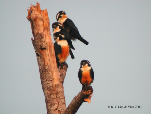 生活习性:结小群在开阔的树上捕食。快速追捕昆虫似树燕。守候猎物时头点动而尾轻抽。