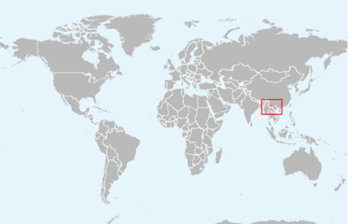 分布于中国(云南)、老挝人民民主共和国和越南。历史记载见于中国广西,甚至远至长江三峡地区,现仅见于云南,呈零星分布。