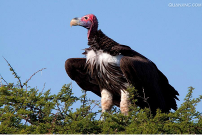 外形特征:肉垂秃鹫背部羽毛黑色和褐色间杂,尾楔型,腹部长有大量白色绒羽,使它们看上去像一个领系餐巾、衣衫不整的嬉皮士。说起它们的行为,人们常用两个字形容——“贪婪”。原来,肉垂秃鹫非常霸道,不论是不是它们先发现的尸体,在争斗中它们总是占上风。如果其他秃鹫不肯让出尸体,它们就会用武力驱赶。肉垂秃鹫取食时也有严格的顺序,总是个体大、身体强的秃鹫先进食。进食时,它们原来粉红色的脸和颈因兴奋会渐渐变成红色,极度兴奋时甚至可以变成紫红色。肉垂秃鹫进食完之后,一般都会把位置让给埃及秃鹫。