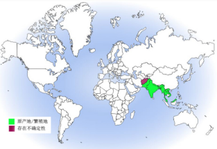 分布范围:分布于印度和巴基斯坦;游荡:尼泊尔;来源不明确:阿富汗。