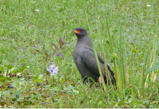 外形特征:蜗鸢沼泽亚种是一种中型猛禽,体长45厘米,翼展120厘米,体重360-520克,寿命17年。成年雄性的整个头部,背部,翅膀,胸部,腹部,侧腹和大腿形成一个整体的深石板灰色,展开的羽毛和尾巴羽毛几乎是黑色。上体覆盖有少许棕灰色的色彩。尾巴底面和尾部根基是白色。虹膜深红色,有的亚种有白眼眉,眼睛的黄亮色在各时期不同。蜡质,口角的色彩也不尽相同。雌性头顶和脖子大多是灰色的羽毛,头颈部两侧是黑色,腹部的羽毛,中间有一个红色覆盖的边界,尾巴下类似雄性,虹膜橙色,脸部有裸露的皮肤。