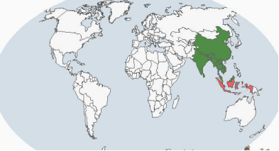 分布范围:分布于孟加拉国、不丹、柬埔寨、中国、印度、印度尼西亚、老挝人民民主共和国、马来西亚、缅甸、尼泊尔、新加坡、斯里兰卡、泰国、越南。
