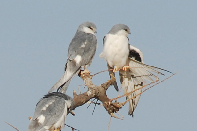 外形特征:非洲的燕尾鸢体型较小,身长约50厘米。羽毛呈灰色和白色。头比较小,脸上有点秃,短喙。双翼狭而长,飞羽的边缘有白色滚边。尾巴分叉很深。红色的眼睛,尾巴的根部呈白色。额头白色,黄腿,飞行时翅膀的内面有两块明显的深色斑。
