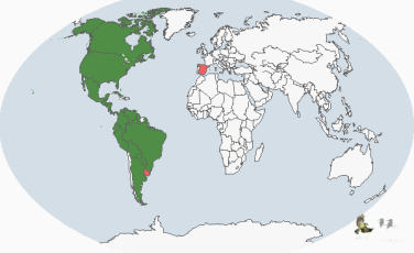 分布范围:分布于安提瓜和巴布达、阿根廷、巴哈马、巴巴多斯、伯利兹、玻利维亚多民族国家、巴西、开曼群岛、哥伦比亚、哥斯达黎加、古巴、多米尼加、多明尼加共和国、厄瓜多尔、萨尔瓦多、法属圭亚那、格林纳达、瓜德罗普岛、危地马拉、圭亚那、海地、洪都拉斯、牙买加、马提尼克岛、墨西哥、蒙特塞拉特、尼加拉瓜、巴拿马、巴拉圭、秘鲁、波多黎各、苏里南、特立尼达和多巴哥、特克斯和凯科斯群岛、美国、委内瑞拉、玻利瓦尔共和国、维尔京群岛。