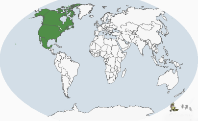 分布范围:分布于北美地区(包括美国、加拿大、格陵兰、百慕大群岛、圣皮埃尔和密克隆群岛及墨西哥境内北美与中美洲之间的过渡地带),中美洲(地处北美与南美之间,包括危地马拉、伯里兹、洪都拉斯、萨尔瓦多、尼加拉瓜、哥斯达黎加、巴拿马、巴哈马、古巴、海地、牙买加、多米尼加、安提瓜和巴布达、圣文森特和格林纳丁斯、圣卢西亚、巴巴多斯、格林纳达、特立尼达与多巴哥等国家和地区)