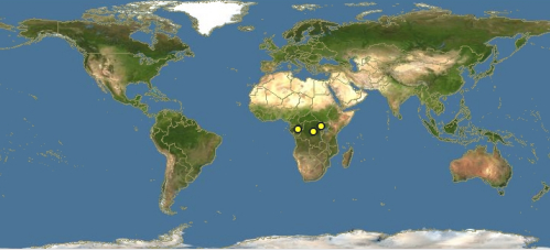 分布于布隆迪、喀麦隆、中非共和国、刚果、刚果民主共和国、赤道几内亚、加蓬、卢旺达、坦桑尼亚联合共和国、乌干达,安哥拉。