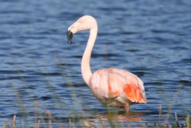 智利红鹳(学名:Phoenicopterus chilensis):又名智利火烈鸟。体重2500-3500克,体长79-145厘米,翼展127-153厘米。体大而甚高,是一种体羽偏粉色的水鸟。嘴粉红而端黑,嘴形似靴,颈甚长,腿长,红色,两翼偏红。亚成鸟浅褐色,嘴灰色。