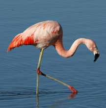 形态特征:智利红鹳体重2500-3500克,体长79-145厘米,翼展127-153厘米。嘴短而厚,上嘴中部突向下曲,下嘴较大成槽状;颈长而曲;脚极长而裸出,向前的3趾间有蹼,后趾短小不着地;翅大小适中;尾短;体羽白而带玫瑰色,飞羽黑,覆羽深红。