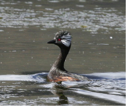 形态特征:白簇鸊鷉一种游禽,白簇鸊鷉体长31厘米。全身羽毛以黑棕色为主,黑头,黑颈,眼角后有一块白色的簇羽,因而得名。黑喙,嘴形直,侧扁,具尖端;鼻孔透开,而位近嘴基;翅短小,具12枚初级飞羽,第1枚残留,次级飞羽缺第5枚。尾仅具一些短软的绒羽,或几乎没有。两脚位近臀部。跗蹠侧扁,适于潜水;四趾均具宽阔的瓣蹼;爪钝而宽阔,中趾的内缘呈锯齿状,后趾短小,位置较其他各趾为高,或则付缺。体羽短而稠密,饶有抗湿性;羽具副羽,尾脂腺被羽;两性相似。头骨为裂腭型和全鼻型;并缺基翼突;消化系缺盲肠;雏为早成性。