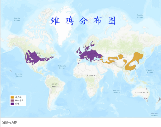 作为狩猎鸟,被人为引入欧洲、北美洲、夏威夷、智利、澳大利亚和新西兰等地。如指名亚种 P. c. colchicus,最晚是由罗马人引入欧洲。雉鸡在10世纪左右被带入英国,但在17世纪左右绝迹,1830年左右重新引入。