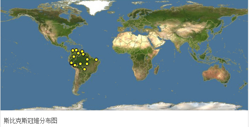 分布于玻利维亚、巴西、哥伦比亚、厄瓜多尔、圭亚那、秘鲁、委内瑞拉玻利瓦尔共和国。