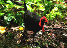 冢雉科Megapodiidae有7属20种。主要分布于澳大利亚、新几内亚、印度尼西亚。体大如鸡;嘴呈圆锥状;头部大多无羽,皮肤裸露,现黄或红色;雌雄羽色相近,均以黑褐色为主;趾强大。营巢习性特殊,自己不孵卵,而把卵产在有腐植质的堆积中、沙土上和火山灰上,借自然热力进行孵化,故名。