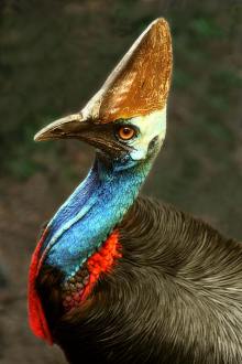 食火鸡产于巴布亚新几内亚、澳洲,新不列颠,梄息在稠密丛林中,过着隐蔽的生活,性“警怯”,敏捷,稍惊动就迅速在丛林内灵活弃跑。能跳2米高,善游泳。主食浆果、水果、未熟的种子树叶、昆虫、甲壳动物、鱼蛙、蜥、小鸟和鼠。因其贪食,常吞食石子、铁片及玻璃而得名。