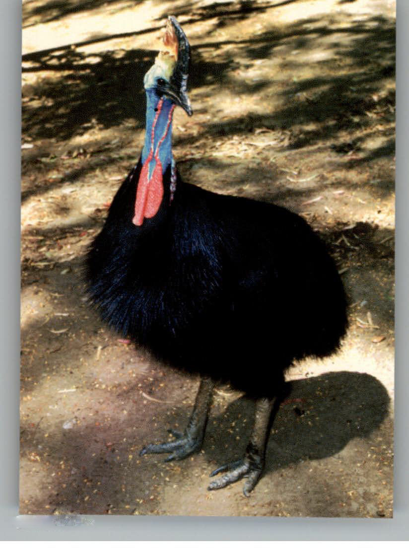 2.鸸鹋科(Dmomgeidae):产于澳洲。栖于空旷林区、草原和半沙漠地带,成对或小群生活。主食草、果实、种子等植物性食物,也食昆虫和蜥类小动物。雌鸟颈部有喉囊(袋),可发出“哼、哼”"或“咚、咚”声。