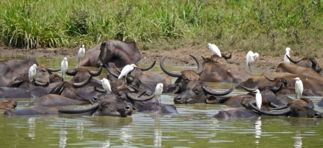 水牛皮厚、汗腺极不发达,热时需要浸水散热,经常泡在水中,所以得名水牛。它们腿短蹄大,适合耕作;役力、泌乳量和耐粗性都比黄牛高;乳脂率8%左右,乳脂白;肉质较粗。因为利用价值很高,所以被人类驯化历史攸久。