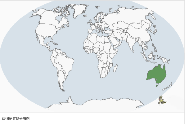 澳洲硬尾鸭(学名:Oxyura australis)是属于鸭科的非常典型的一种群居型水鸭。体圆,翼短,尾羽长而尖。雄鸭在繁殖期有鲜艳的淡红色羽毛和鲜蓝色的喙,雌鸭的羽色单调,个体较小,有1或2条贯脸纹。无论雌雄,平时尾羽都翘起。雄鸭食道可膨大,颈内可能有气囊,在吵闹而精致的求偶表演时便膨胀起来。雄鸭协助育雏,这是鸭类中罕见的特性。会用其特殊的尾羽在水下把握方向以寻觅食物。很少上陆地活动。喜欢住在大湖,浅湾,沼泽。能在风浪里睡觉。生活于温暖地区。以水生植物为食,也吃昆虫、鱼、蛙、甲壳动物、软体动物、蠕虫等为食。