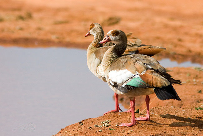 埃及雁(学名:Alopochen aegyptiacus)为鸭科埃及雁属的鸟类,俗名秃雁。体重11-4千克。眼睛棕色,眼窝处有一对似戴上墨镜的红眼圈,颈部及背羽为巧克力色,一对善于飞行的大翅膀由排列整齐的黑白两色所构成,有粉红色的长脚,嘴基米色。上体略有斑驳的红褐色,颈部有领围呈红褐色。分布于尼罗河上游河谷地带及撒哈拉以南的非洲地区。