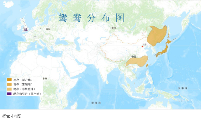 鸳鸯多在中国东北北部、内蒙古繁殖;东南各省及福建、广东越冬;少数在台湾、云南、贵州等地是留鸟。福建省屏南县有一条11公里长的白岩溪,溪水深秀,两岸山林恬静,每年有上千只鸳鸯在此越冬,又称鸳鸯溪。是中国第一个鸳鸯自然保护区。江西省上饶市婺源县鸳鸯湖是亚洲乃至全世界最大的野生鸳鸯越冬栖息地。