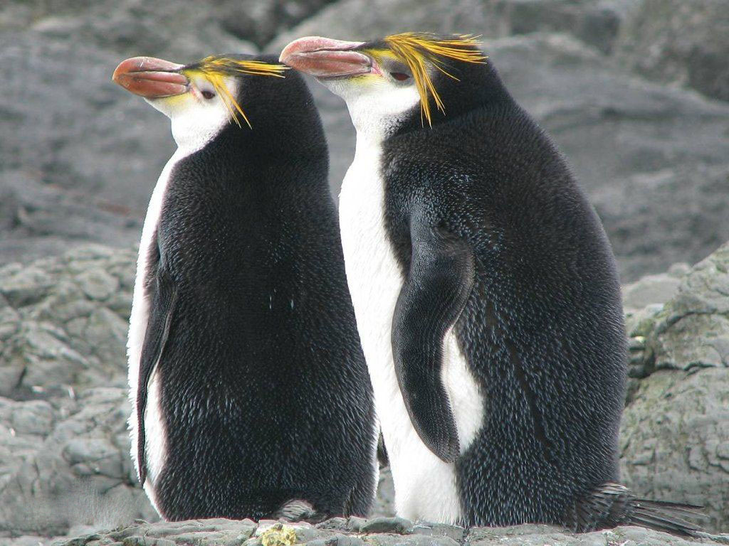 一旦雄性建立了巢穴,它们就会迅速左右摆动头。这向其他企鹅传达了该领土是它们的领土,它们将保护领土不受任何威胁。识别出攻击范围(约2米)之外的威胁或掠食者的皇家企鹅将头向威胁倾斜,并发出与嘶嘶声或哭声有关的声音。当掠食者靠近时,皇家企鹅会在攻击前移动其头和脚蹼以进行恐吓。只有当雌性企鹅孵化卵时,皇家企鹅才不会报复攻击;在这段时间内受到攻击的雌性会俯身并畏缩,抵御背侧的啄食以保护卵。作为一种娱乐方式,皇家企鹅也会攻击附近的其他企鹅。它们会用张开的喙攻击,当喙互锁时就会变成拔河。