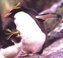 马克罗尼企鹅有密生的冠毛。体长70厘米左右,重5-6公斤,是所有冠企鹅中最大的一种。