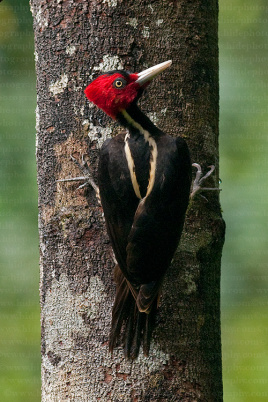 淡嘴啄木鸟是体型最大的啄木鸟之一,也是中美地峡特有的物种,它们的栖息地从墨西哥一直延伸到巴拿马,它们成双结对,在树冠间和雨林各处飞来飞去,它们在树干上螺旋式地攀缘搜寻蛀木虫,用大而结实的硬喙可以在树皮下和树洞中把蛀木虫和它们的幼虫寻找出来,当它们用硬喙凿开树皮,余下的工作将有带有黏性的长舌头来完成,它们带有短钩的舌头可以在凹槽和树洞里探寻并把蛀木虫带出来吃掉。
