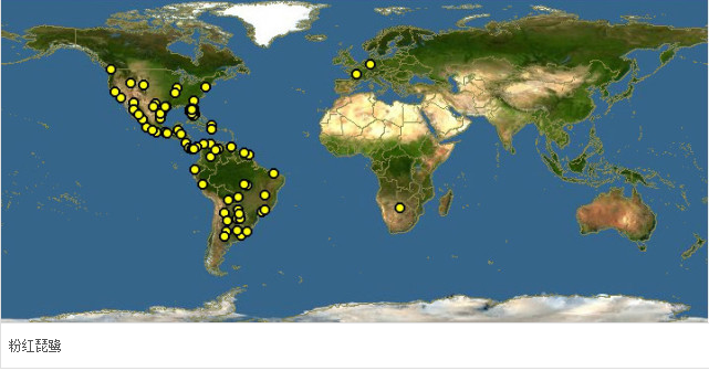 粉红琵鹭(学名:Platalea ajaja):体高87厘米,翼展127厘米,体重1300克,寿命10年。是一种大型涉禽。脚很长,喙长而呈竹片状。成鸟头部光秃及呈绿色,颈部、背部及胸部呈白色,其他的都呈深粉红色。喙呈灰色。雄鸟和雌鸟相似。飞行时的头部向前伸。在丛林或树上筑巢。每次产2-5卵,卵呈白色,有褐色斑纹。