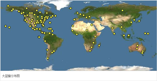 大蓝鹭在北美洲大部分地方都可以看到,包括阿拉斯加、魁北克和新斯科舍。南面的界线可以到达佛罗里达、墨西哥、加勒比海以至南美洲。其生境包括淡水和咸水沼泽、红树林、洪积草原、湖畔和海岸,但无论如何,都需要靠水生活。它们一般在水体傍的树林或灌木筑巢。