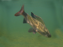 黑龙江茴鱼是一种中小型鱼类,个头一般都在50—400克之间,很难见到有超过500克重的大鱼。茴鱼的身体呈长而侧扁状,尾柄较发达;吻钝且短;口端位,上下颌等长;口裂倾斜;上颌游离,末端可达到眼正中的垂直线下方;上下颌各有一列细齿,舌上无齿;眼较大;鳞细小,侧线平直;背鳍长且高大,背缘呈圆凸形,呈旗状;脂鳍较小,位于臀鳍起点之后上方;雌体的背鳍、臀鳍较雄体为大;背部和体侧为紫灰色,体侧散生有许多黑褐色小斑点;生殖时色彩明显,成鱼体侧有许多大的红色斑点,各鳍均为深紫色;背鳍上有2条由赤褐色斑点形成的纹带,幼鱼体侧除斑点外,还有数条暗色横斑,随着生长而逐渐消失;茴鱼的腹部颜色较浅淡,整个体色较鲜艳,属鲑形目,茴鱼科,茴鱼属。俗称:斑鳟子、红鳞鱼、海罗茨等。