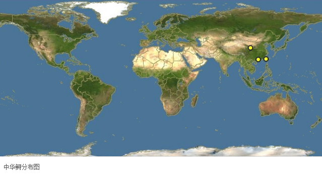 据1834年的有关文献记载,中华鲟的模式产地是中国。尽管它不是中国特产,但却由于模式产地在中国而出名。后来有人根据当时的中国历史和后人的工作推测是广州。该物种历史记录在韩国西南部和日本九州西部以及中国的黄河,长江,梨,明江和青塘河中,但除了长江中下段以外,已经从所有这些地区中消失。