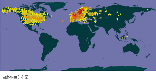白斑狗鱼广泛分布于北美洲及欧亚大陆北纬74°-36°的淡水流域。在中国主要分布在新疆阿勒泰地区额尔齐斯河流域。