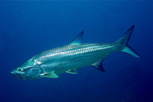 大西洋大海鲢(学名:Megalops atlanticus)背鳍短脊位于身体中部,臀鳍较长,尾部依附于背鳍。胸鳍发育很弱。侧线鳞片呈管状分布。背部蓝灰色,边线为闪亮的银色。大鳞甲片,覆盖侧身93~107cm范围,一直延伸到尾部。