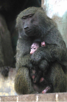 东非狒狒(学名:Papio anubis):亦称橄榄狒狒,是因为它的外表看起来很类似橄榄色。它的另一个名字,阿努比斯狒狒则是来自埃及的神——阿努比斯,它的头部从侧面看上去就像是阿努比斯的真实写照。具有高度的性别二态性。雄性体重约25千克,雌性约14千克,雄性头体长760毫米,尾部长560毫米;雌性小,头体长600毫米,尾长480。雄性有较大的犬齿,而雌性的牙齿要小得多。毛色的特点是暗橄榄灰色,毛发的整体颜色由黄色、棕色至黑色交替。雄性具有大片鬃毛。