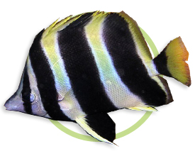 | 身体淡黄色,靠近腹部颜色变淡至白色,口部至额头有一条黑色细纹,体侧有五条黑色宽纹,第一条穿过眼睛,第五条位于尾鳍前端。背鳍、腹鳍、臀鳍为和身体一致的黄白底色黑条纹;胸鳍透明;尾鳍后部黄色。幼鱼体白色,条纹与成鱼相同,随着成长黄色慢慢出现并扩大。 栖息和活动于珊瑚丰富的岩礁区域,主要以珊瑚虫、管虫、海绵以及小型甲壳类为食,水深范围10-150米,其中在食物充沛的20米深处最为常见。幼鱼单独活动,成鱼独自或成对活动。 因其生活水深,在浮潜活动中难以见到,水族贸易中也十分少见,再加上它对温度的要求明显低于一般海水缸的温度范围,因此少有饲养,也没有可考的饲养经验,不建议家庭饲养,仅适合经验丰富的水族馆在凉水鱼的纯鱼缸中饲养。 |