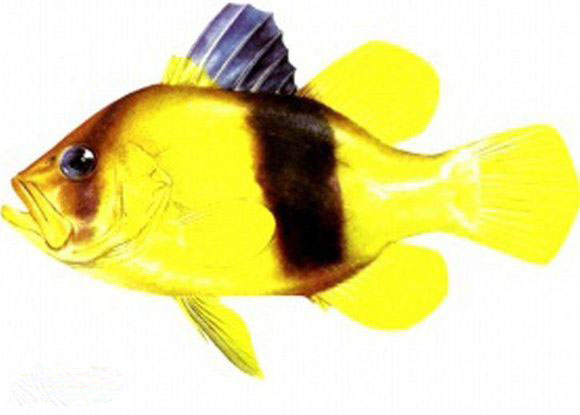 黄鲈,即双带黄鲈,Diploprion bifasciatum (Cuvier, 1828),又称双带鲈。鮨科黄鲈属的一种鱼类。身体侧扁而高,体呈淡黄色,有2条黑色纵带,被细小栉鳞。口大,两颌、犁骨及胯骨皆具绒毛齿。