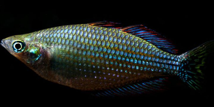 彩虹绿苹果鱼,为银汉鱼目、银汉鱼科、舌鳞银汉鱼属、银汉系列品种,原产于亚洲新几内亚岛西巴布亚北部的曼伯拉莫河系。体色虽然和常见的红美人有点相似,但本种雄鱼和大帆绿苹果一样,进入成熟阶段后,不但背部会逐渐隆起,并会发展出格外大片的臀鳍鳍面,论观赏价值可一点不输大帆绿苹果