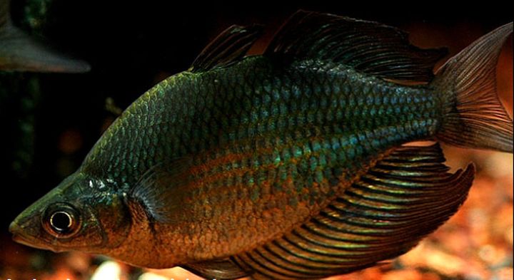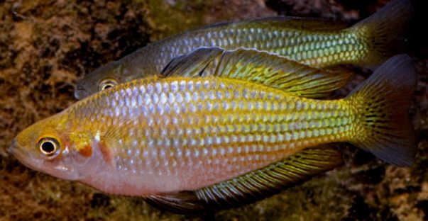 雌雄分辨:雄鱼背鳍、臀鳍及腹鳍条成丝状延长,繁殖季节,体色会变成鲜艳的黄色