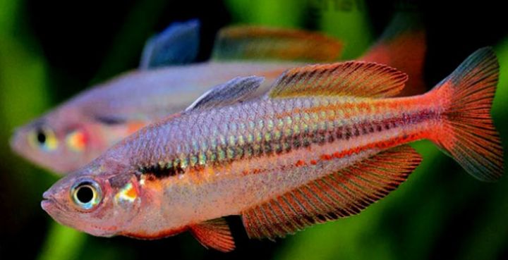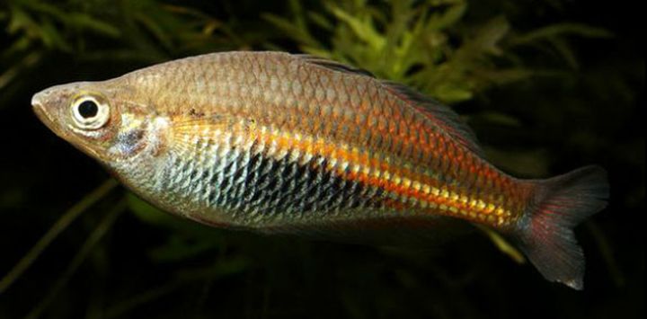 橙红美人鱼,别名小虹银汉鱼,为银汉鱼目、银汉鱼科、虹银汉鱼属、银汉系列品种,原产于亚洲巴布亚新几内亚Kurumoi湖泊的淡水流域。是体形较小的彩虹鱼品种,鱼体橙黄,体侧中轴附近有一条黑色贯穿鱼体的网状斑纹,被IUCN列为易危保育类动物