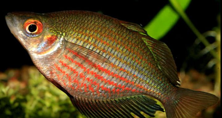 大眼虹银汉鱼,为银汉鱼目、银汉鱼科、虹银汉鱼属、银汉系列品种,原产于大洋洲昆士兰省北部艾瑟顿高原Eacham火山口湖。栖息于小溪与火山口湖的浅水地带,属弱碱性偏硬水质鱼类