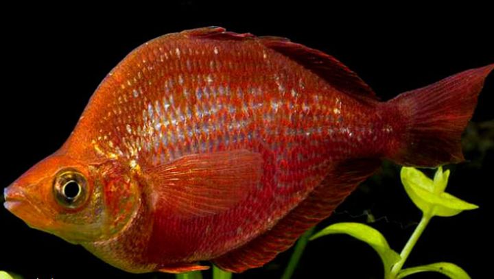 雌雄分辨:雌雄颜色差异明显,雄鱼体色是金属光泽的酒红色。雌鱼体色茶褐色,并不出众