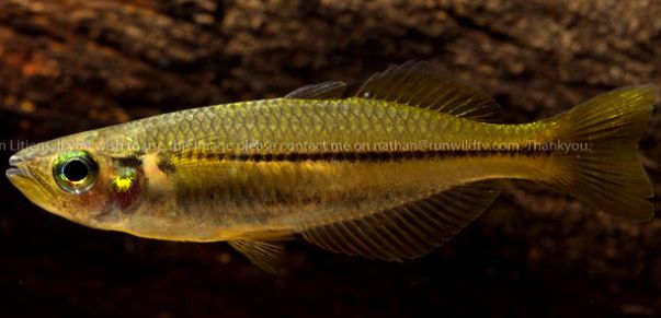 大凡霓虹鱼,别名大帆霓虹_凯恩斯银汉鱼,为银汉鱼目、银汉鱼科、凯恩斯银汉鱼属、银汉系列品种,原产于大洋洲昆士兰的凯恩兹附近。全身呈金黄色,体侧中间有一条黑色条纹,适合饲养在水草水族箱中