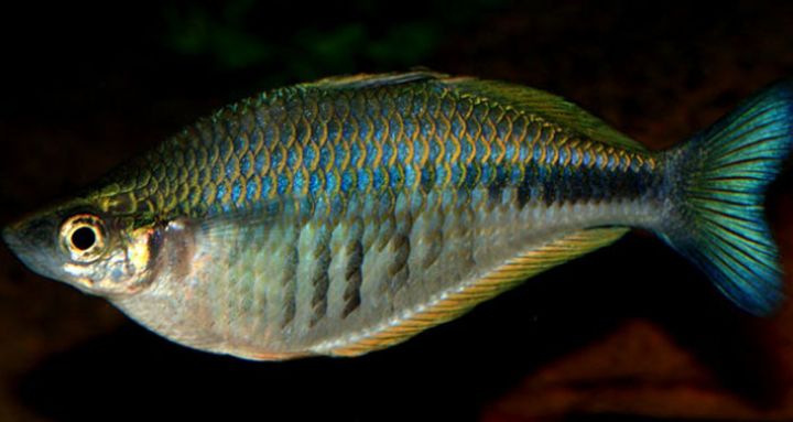 蓝眼燕子灯鱼,别名鲻银汉鱼,为银汉鱼目、银汉鱼科、鲻银汉鱼属、银汉系列品种,原产于大洋洲沿海溪流及东部入海口河口汽水水域。和其他银汉鱼属一样,在昏暗的环境下鲻银汉鱼的体色会变得艳丽。是大洋洲最常见、最丰富的鱼类物种之一