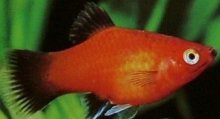 该品种最常见的月光鱼,在水族店肯定能看到。令人感到惊讶的是,很多月光鱼的原种就具有这种红色。如图片中的雌性个体那样,体型圆乎乎的,煞是可爱。