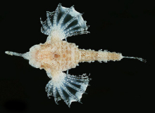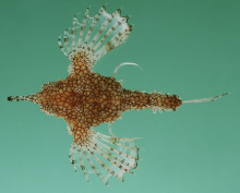 综述:胸鳍大,水平位呈翼状;腹鳍由指状鳍条组成。口小,无牙,口位于骨质的长吻下方。其自然历史及其与其它类群的亲缘关系尚不清楚。最著名的一个种是飞海蛾鱼(Pegasus volitans),眼蓝色,体褐色或深红,从印度到澳大利亚均有发现。