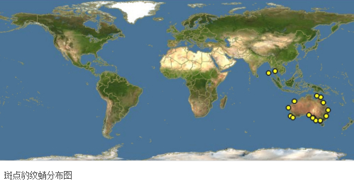 斑点豹纹蛸(学名:Hapalochlaena maculosa):体长约20厘米。平均体重38克。是一种小型章鱼,上体表面质地粗糙,有皱纹覆盖。会很好地伪装,体表呈灰色、米色、深棕色、深黄色至棕黄色。遇到危险时,皮肤中的特殊色素细胞被激活,体表和腕臂上显示多达60个虹彩蓝环和斑点,这些青蓝色萤光斑点和蓝色环纹是警告色。唾液腺和卵巢含有河魨毒和胺类,亦具咬毒。